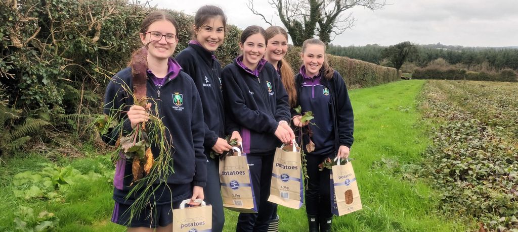 On Tuesday 14 October, the second year Home Economics class paid a visit to Joe’s Farm Crisps in Killeagh. They were shown around the farm, taught about sustainable practices, seasonal produce and crop rotation. The girls each picked some beautiful beetroot, carrots and potatoes, and all went home with a beautiful pumpkin to carve or eat for Halloween. We highly recommend Joe’s farm, as well as their delicious crisps.