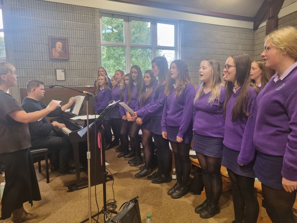 On Wednesday, 1st October, our school community gathered at St. Patrick’s Church, Rochestown, to celebrate the opening of the school year with a special Mass, celebrated by Fr. Pat O’Mahony. The liturgy was greatly enriched by the active participation of our students through the choir and orchestra, as well as their involvement in the readings, Prayers of the Faithful, offertory gifts, and artwork prepared for the Mass booklet. The celebration was coordinated by the RE Department, whose efforts ensured a meaningful and uplifting start to our school year. At the end of Mass, Ms. Lucey reflected on the many successes already achieved by our school community this year and extended her best wishes to every member of the school community for the year ahead.