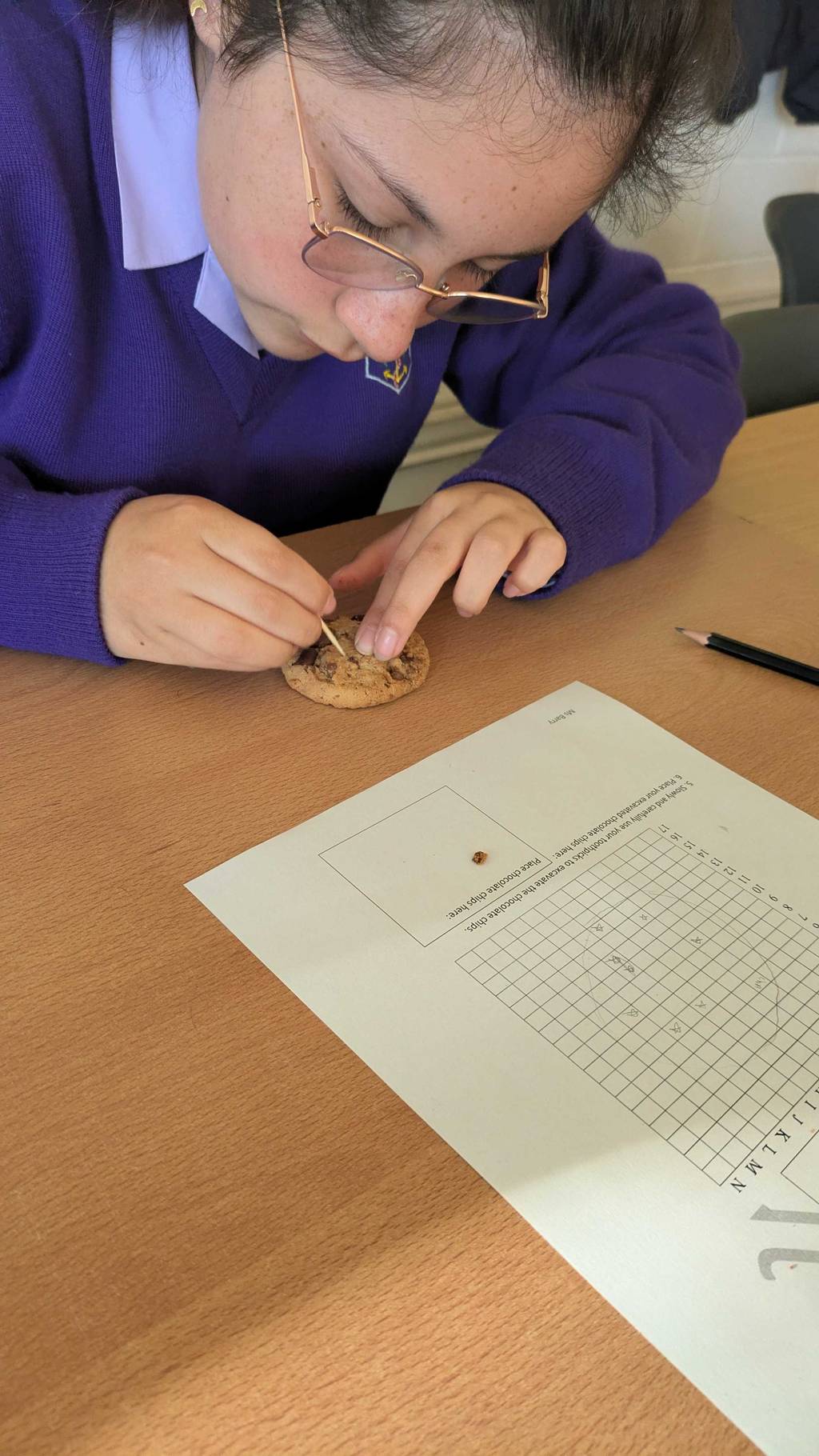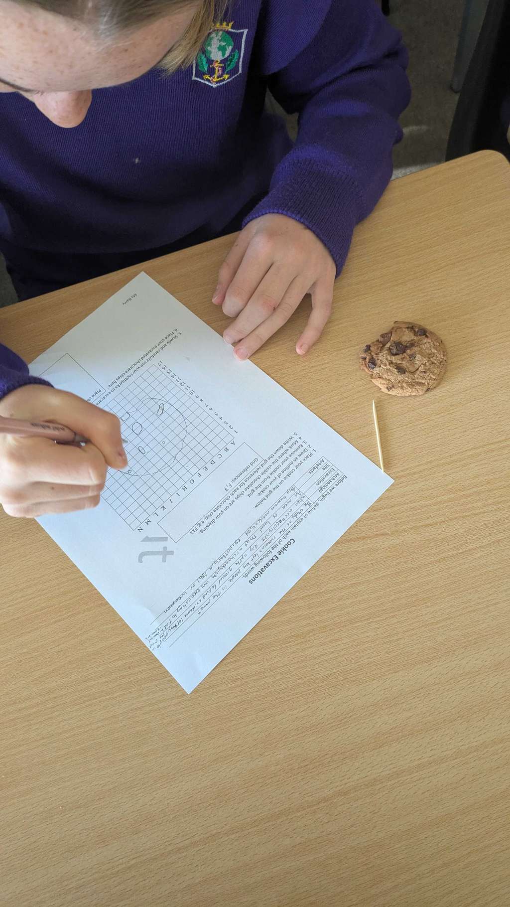 Today 1 Pi became archaeologists! Using cocktail sticks as “trowels” and cookies as excavation sites, students mapped their “dig” on a grid, marked visible “artefacts” (chocolate chips), recorded precise grid references, and then carefully excavated their finds—proving that patience and good note-taking are as important as sharp eyes. Using our Cookie Excavations worksheet, they also learned key terms like archaeology, excavation, site, and artefact before getting hands-on.