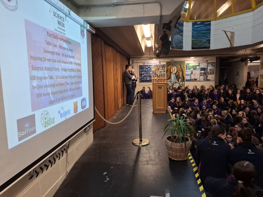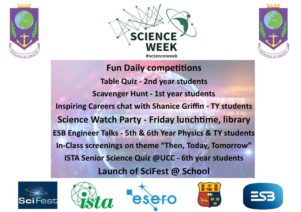 Science Week @ RMC was officially launched at school assembly this morning by Mr. Foster and the poster of events was uncovered. The excitement throughout the well was evident when students learned about the events that they will be experiencing during the week. Some of the highlights for the students include the 1st year Scavenger Hunt, 2nd year Table Quiz and Guest Speaker Talks for 4th, 5th, and 6th years. Mr Foster shared the first of the daily Science riddles and daily winners will receive a voucher for Wendy’s. Stay tuned for more updates.