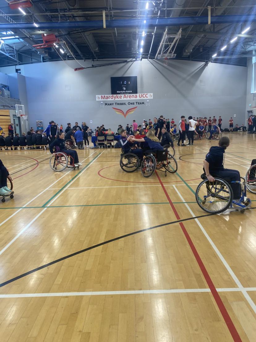 Our 4th year Leaving Certificate PE students attended the Wheelchair Basketball4All event in the Maradyke today. The event allows students the opportunity to experience adapted physical activity through the medium of wheelchair basketball in a fun, supportive environment. The girls played 3 games, drawing 2 and losing the third by a single point. The girls thoroughly enjoyed the event and represented the school excellently.