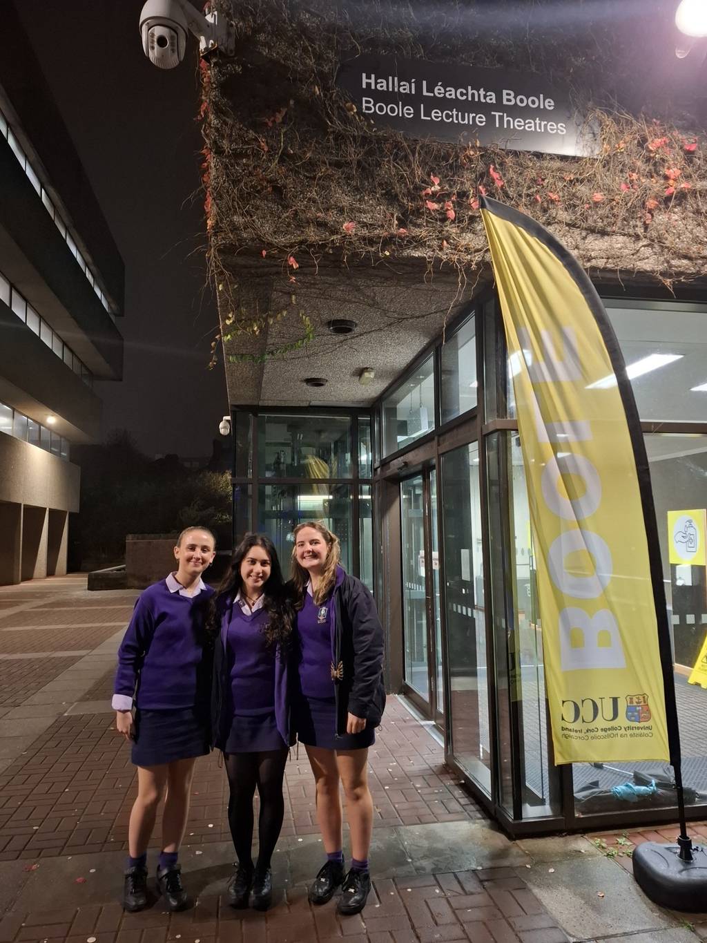 Well done to 6th year students Michaela Carney, Claire McCarthy and Julie Murray who participated in the ISTA Senior Science Quiz at UCC on Thursday evening. While they did not progress to the next round, they really enjoyed the experience and Julie won a spot prize!