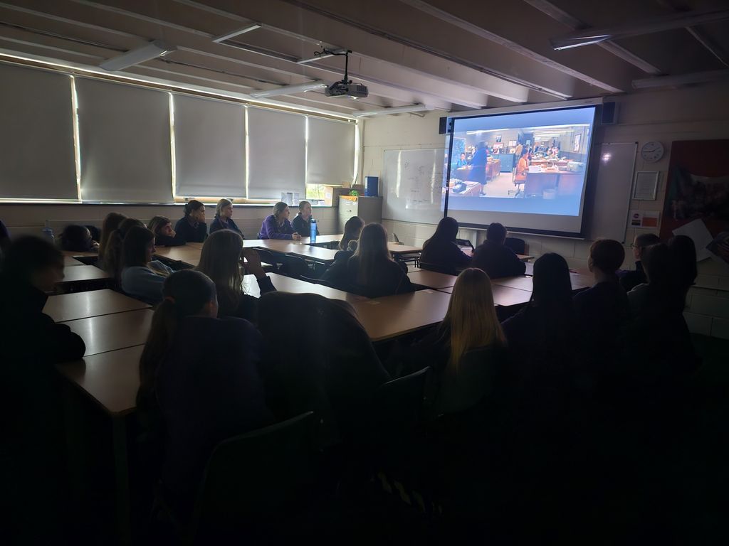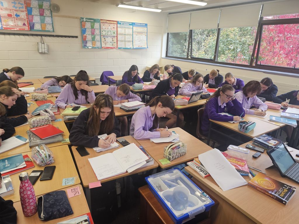 Second and fourth years enjoying a blooket quiz, a factorisation challenge and movie Hidden Figures in class for Maths week.