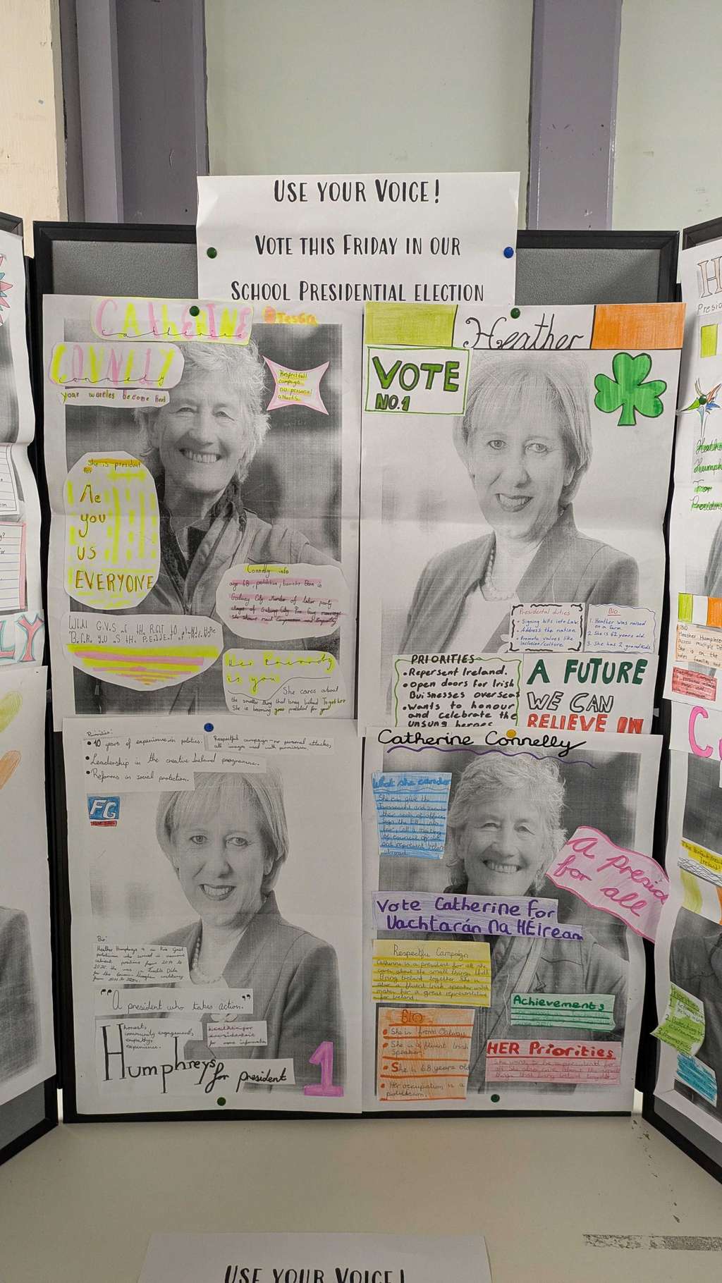 The school community have been researching the candidates running in this year’s Presidential Election in CSPE, SPHE, and Pastoral Care over the last two weeks.