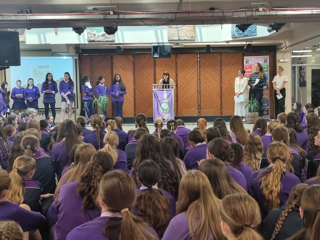 We kicked off Languages Week this morning with a whole school assembly from the Modern Foreign Languages Department. The assembly featured speeches from many of our multilingual students, showcasing the wonderful variety of languages spoken in our school community, and what they mean to those who speak them. We were also treated to a beautiful performance of ‘La Vie en Rose’ and ‘Je Te Laisserai des Mots’ from some of our very talented 6th Year students. Thank you and well done to all who contributed!