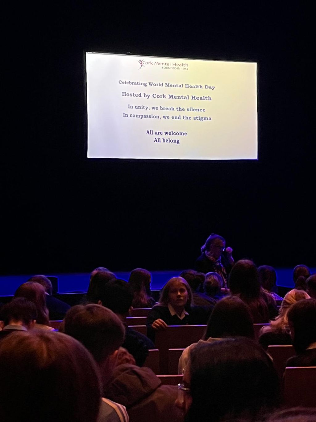 To celebrate World Mental Health day, the TY students attended the Cork Mental Health Seminar at the Cork Opera House. Speakers included psychotherapist Richie Hogan, motivational speaker Brenda Dennehy and Liam Doocey from the Youth Health Service. The students learned about how to develop a more positive mental health and how to build resilience and overcome adversity.